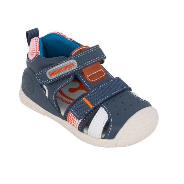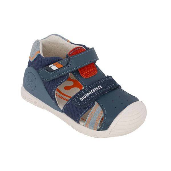 Biomecanics 262231-A556 A Παιδικό παπουτσοπέδιλο για αγόρι δερμάτινο Πετρόλ/Πορτοκαλί
