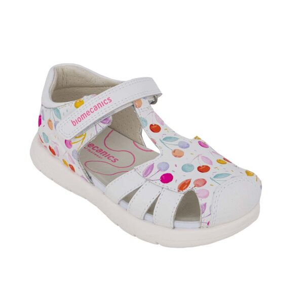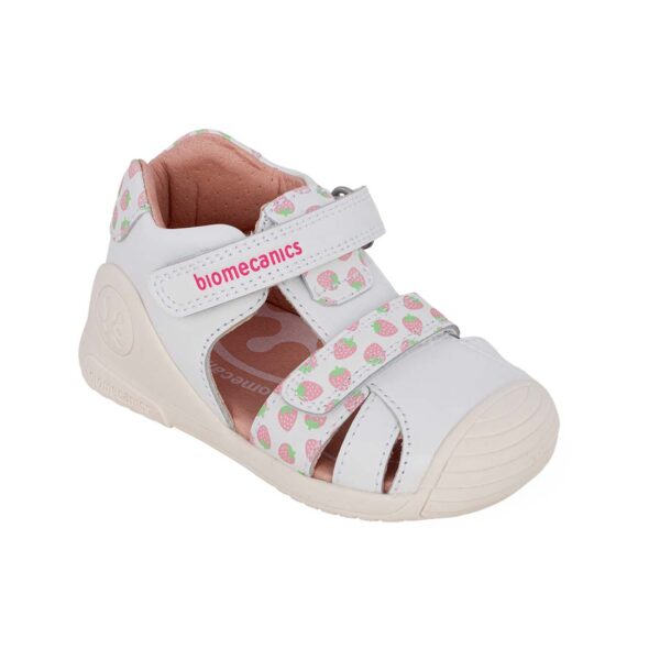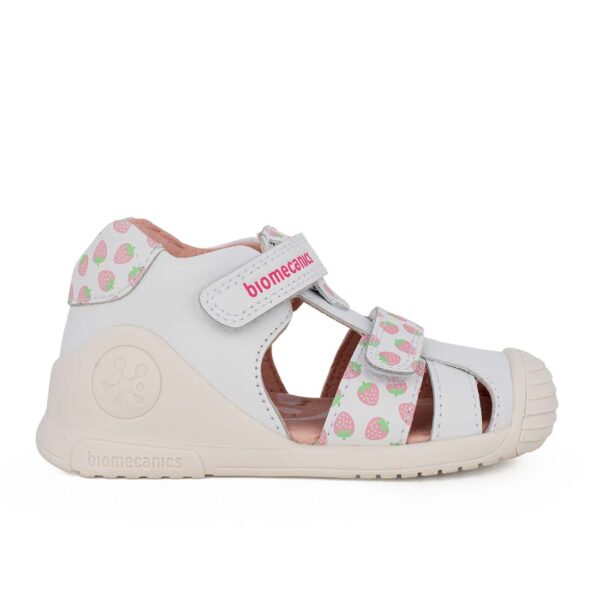 Biomecanics 262107-B050 Παιδικό παπουτσοπέδιλο για κορίτσι δερμάτινο Λευκό/Φραουλίτσες