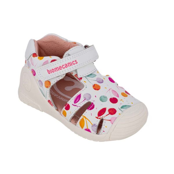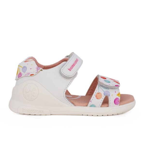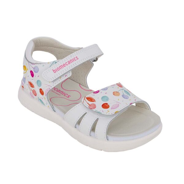 Biomecanics 262141-A050 Παιδικό πέδιλο για κορίτσι δερμάτινο Λευκό/Κερασάκια