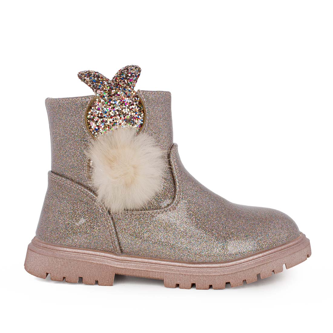 Exe 072515W T52 Παιδικό μποτάκι για κορίτσι σε οικολογικό δέρμα σε λουστρίν Χρυσό/Ροζ γκλίτερ
