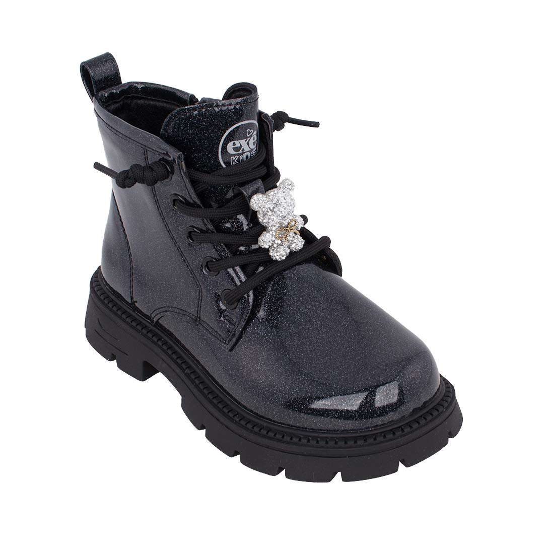 Ricco 1902 Παιδικό μποτάκι για κορίτσι σε λουστρίν δέρμα Μαύρο