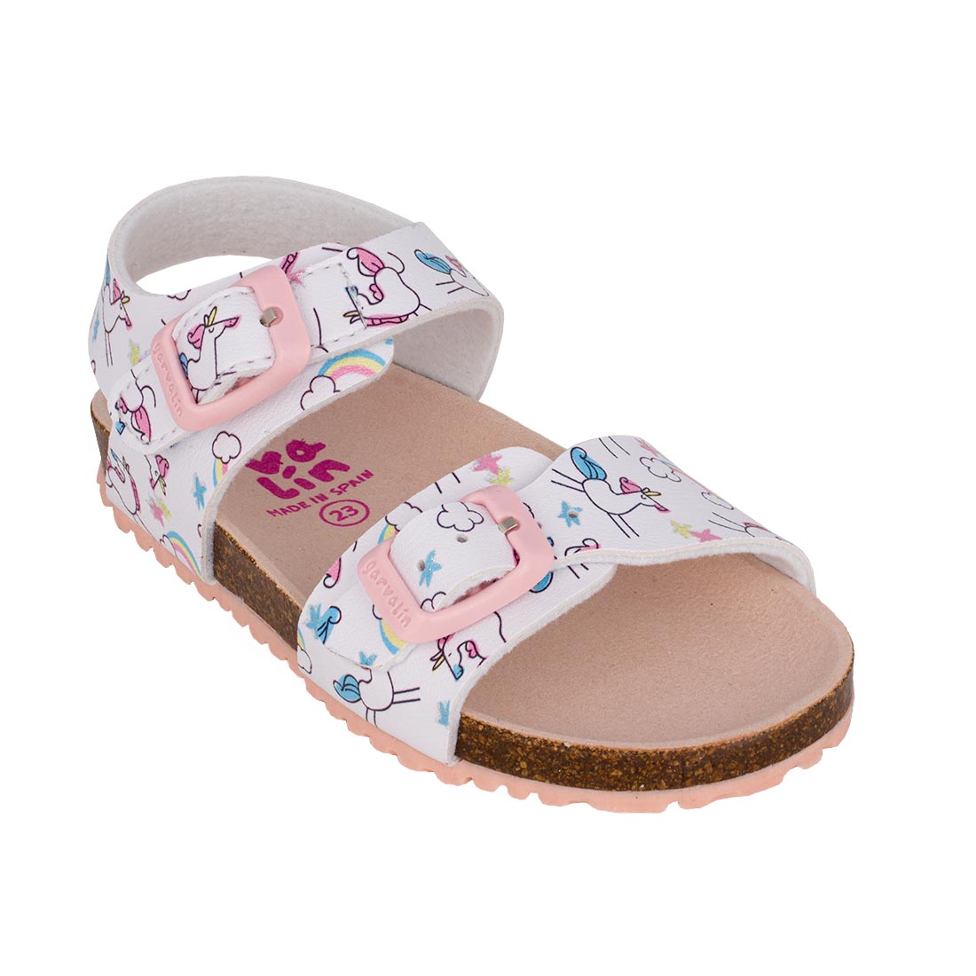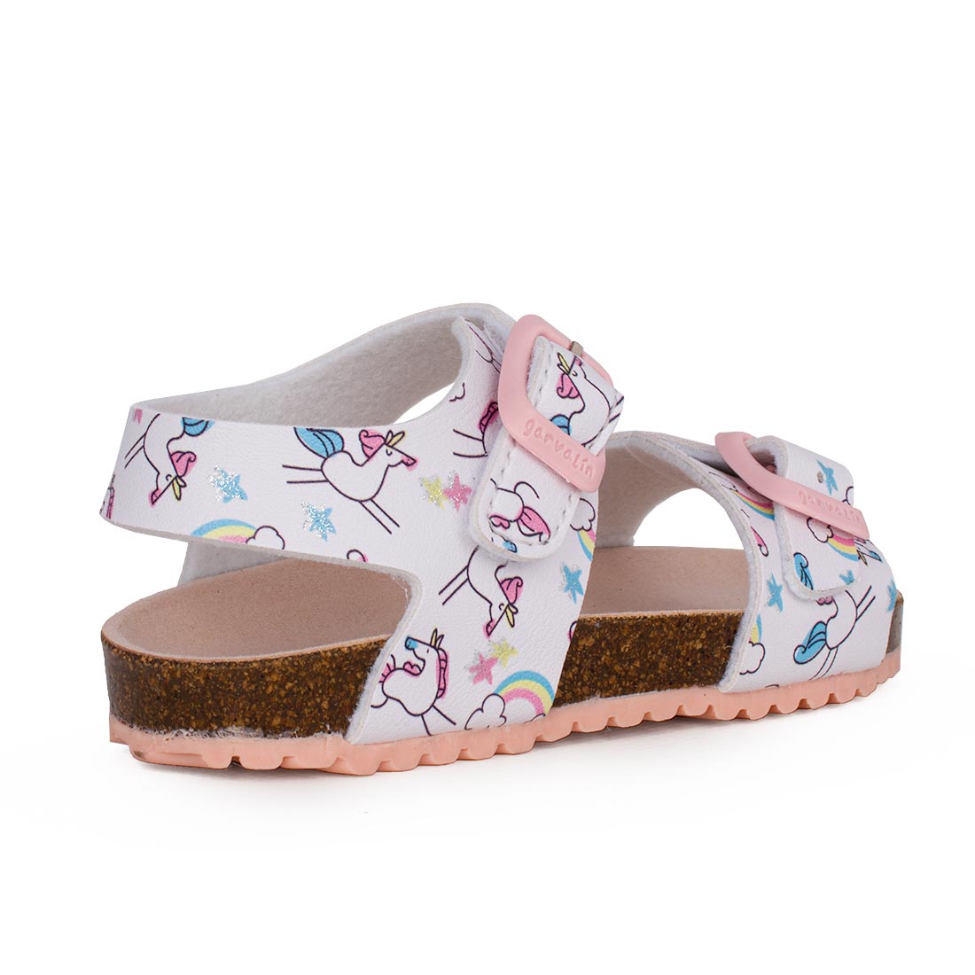 Garvalin 252463-B050 Παιδικό πέδιλο για κορίτσι σε οικολογικό δέρμα Λευκό/Μονόκεροι