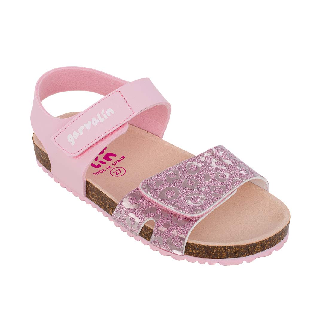 Garvalin 262465-B032 Παιδικό πέδιλο για κορίτσι σε οικολογικό δέρμα Ροζ/Λεοπάρ Γκλίτερ