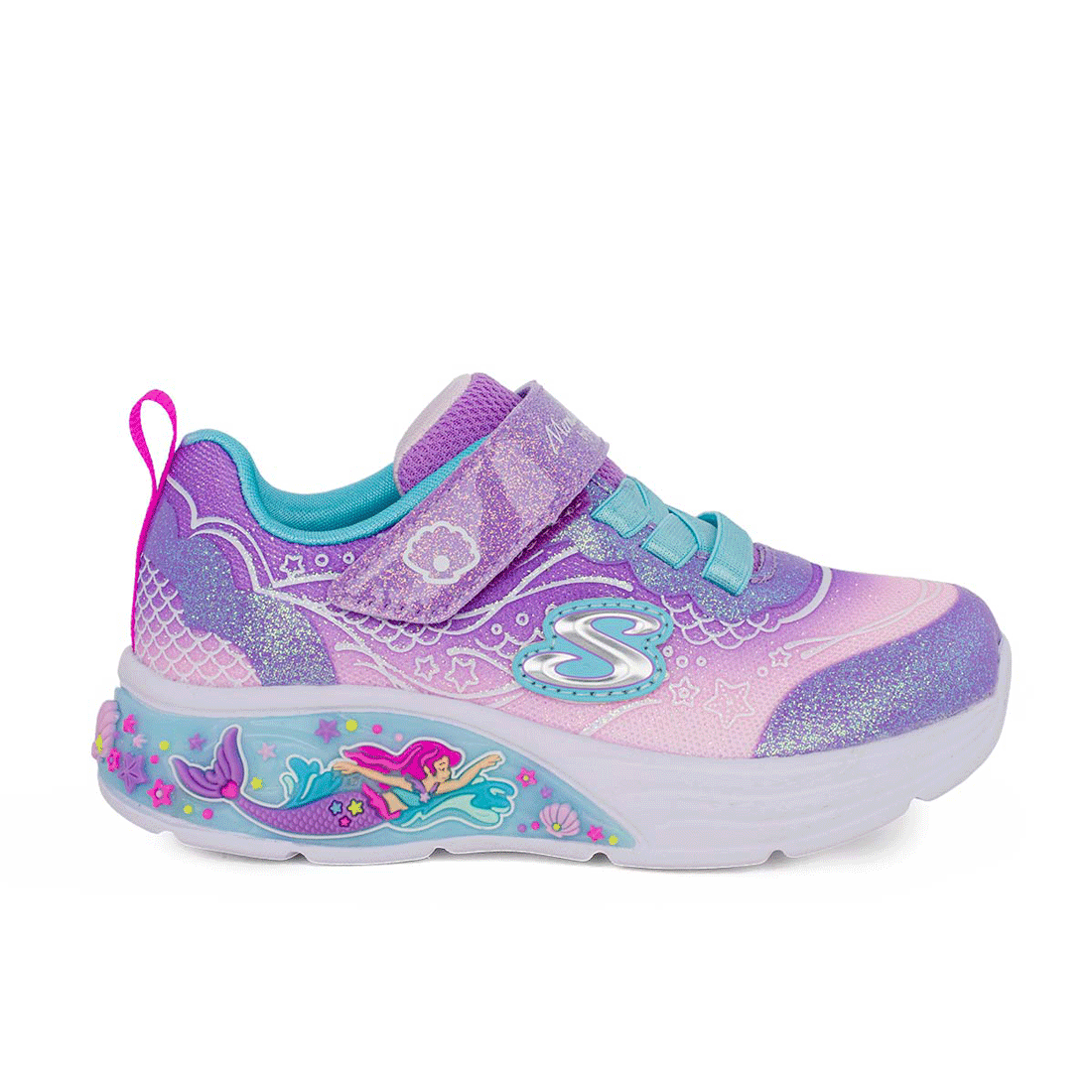 Skechers 303061N/LVMT Παιδικό αθλητικό με φωτάκια για κορίτσι σε συνθετικό υλικό και αδιαβροχοποιημένο ύφασμα Λιλά/Γοργόνα