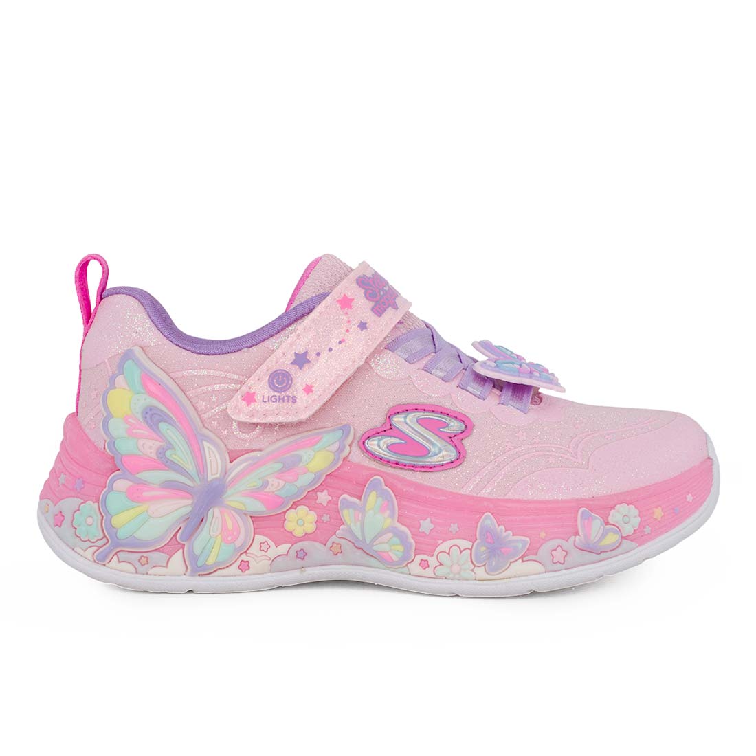 Skechers 303065L/LPMT Παιδικό αθλητικό με φωτάκια On/Off για κορίτσι σε συνθετικό υλικό και αδιαβροχοποιημένο ύφασμα Ροζ/Πεταλούδες