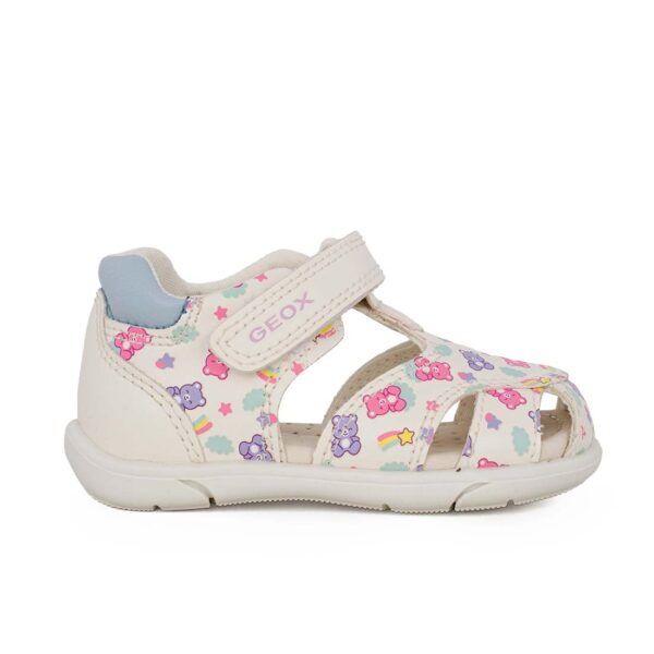 GEOX SANDAL ZAPIDO B556FC 05404 C0270 Παιδικό πέδιλο για κορίτσι σε οικολογικό δέρμα Λευκό/Multi/Αρκουδάκια