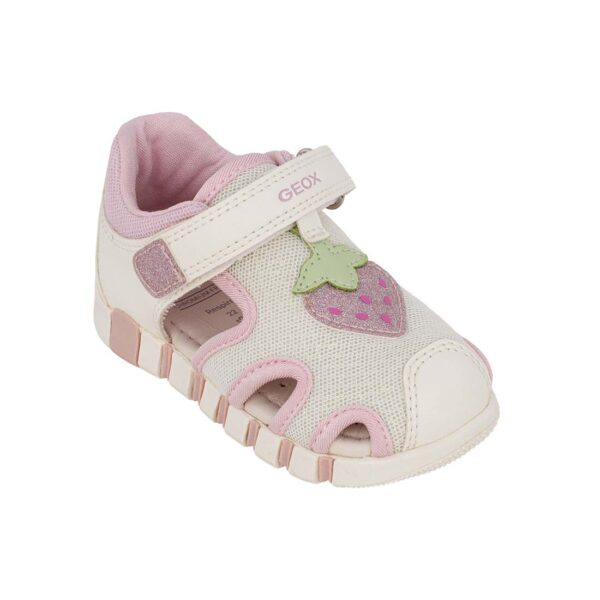 Geox S SANDAL IUPIDOO B6517B 054GN C0406 Παιδικό παπουτσοπέδιλο για κορίτσι σε οικολογικό δέρμα και ύφασμα Λευκό/Ροζ/Φράουλα