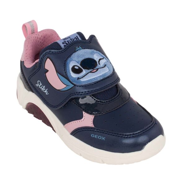 Geox J FADINLIGHT B J56M4F 054AJ C0694 Παιδικό sneaker για κορίτσι Stitch με φωτάκια On/Off δερμάτινο Μπλε/Ροζ